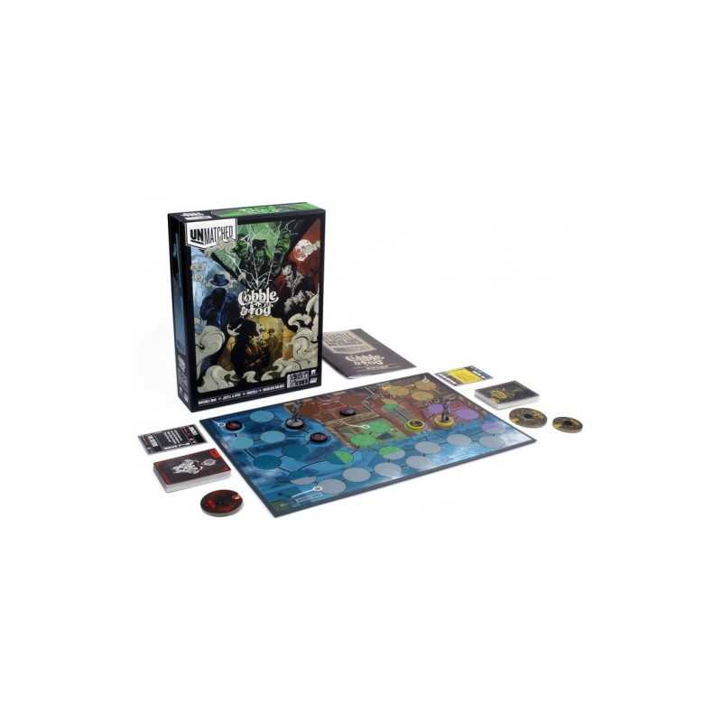 Unmatched Cobble & Fog es la segunda expansión para el juego de miniaturas con cartas Unmatched, que estrena su periplo en la lengua de cervantes con Unmatched Battle of Legends Volumen 1 y con Unmatched Robin Hood VS Bigfoot. Este nuevo refuerzo incluye cuatro nuevos personajes con sus correspondientes mazos de cartas, miniaturas de héroe y fichas de ayudante, además de un mapa adicional donde llevar tus batallas imposibles.