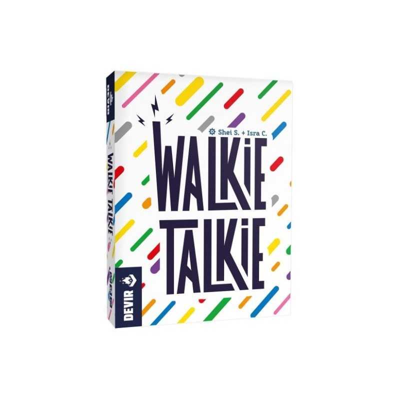 Walkie-Talkie es un juego cooperativo de cartas creado por Sheila Santos e Israel Cendero en el que pueden participar de 2 a 8 jugadores. Las partidas son muy rápidas, de entre 1 y 4 minutos dependiendo del número de jugadores. El objetivo es lograr la mayor puntuación posible descartando todas las cartas de la mano. En Walkie-Talkie, transmitir y recibir la información con rapidez y eficiencia es clave ¡para sumar la mayor puntuación! Para empezar a jugar, barajad las 50 cartas (que por un lado tienen una letra y por el otro muestran un color) y formad dos mazos de más o menos del mismo tamaño. Dad la vuelta a uno de ellos y volved a barajar, de tal forma que letras y colores se mezclen. Tomad las dos primeras cartas y colocadlas de modo que una muestre una letra y la otra un color. ¿Preparados para jugar? ¡Vienen unos minutos frenéticos! Repartid seis cartas a cada jugador sin girarlas en ningún momento y estableced el tiempo que durará la partida, a razón de 30 segundos por jugador. Poned el cronómetro y... ¡Que empiece la transmisión! En Walkie-Talkie no se juega por turnos, ¡todo el mundo juega a la vez! La partida termina cuando todos se queden sin cartas o bien se agote el tiempo. Para librarse de su mano, los jugadores deben descartar cada carta en su mazo correspondiente. Cuando lo hagan, deben decir en voz alta un código válido que relacione letra y color que se encuentran en el centro de la mesa. ¡Vale casi cualquier cosa! A excepción de una palabra repetida o un nombre de color. El resto de jugadores deberán aprobar el código usado para que sea válido; ¡en caso contrario habrá una penalización! ¿Y si en algún momento nos quedamos en blanco? Pues empleamos los códigos “Cambio” y “Corto”. El primero sirve para voltear todas las cartas de la mano y el segundo para pasar las cartas al jugador de tu izquierda. Partidas rápidas a un ritmo frenético que aseguran un montón de risas. Cuando termina la partida, contad el número de asteriscos que muestren las cartas de letra que habéis jugado entre todos para determinar la puntuación. Si se os ha acabado el tiempo, restad 1 punto por cada carta que os quede en las manos. En Walkie-Talkie no se gana o se pierde; simplemente se puntúa. Cuando termina la partida, la tabla de puntuación os permite comparar cómo lo habéis hecho en comparación con vuestras partidas anteriores. ¡Devir Pockets!