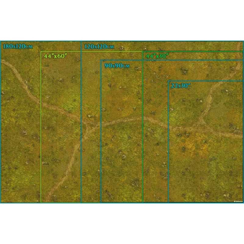 Tapete de lona/PVC con diseño de pradera y caminos, ideal para batallas para Warcry o Kill Team.