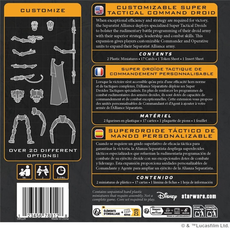 Cuando se requiere un grado superlativo de eficacia táctica para garantizar la victoria, la Alianza Separatista despliega superdroides tácticos especializados que refuerzan la rudimentaria programación de combate de su ejército droide con sus excepcionales dotes de combate y liderazgo. Esta expansión proporciona unidades personalizables de Comandante y Agente para ampliar un ejército de la Alianza Separatista.