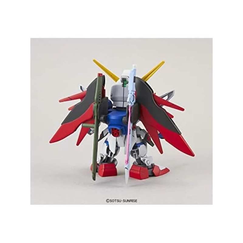 Destiny Gundam versión SD, diseño estilizado con alas de energía. Fácil construcción.