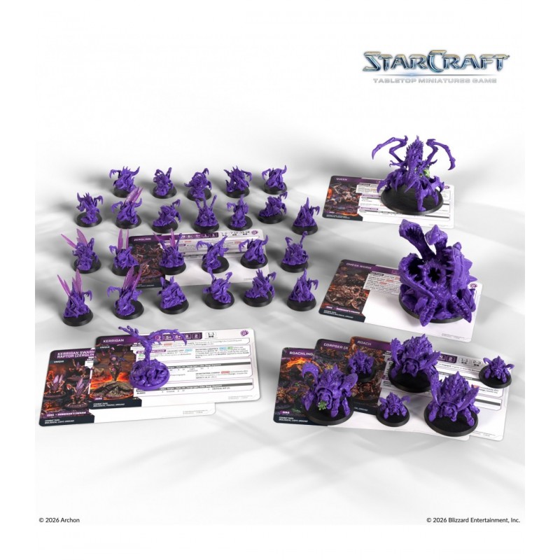 Relive one of StarCraft's most iconic conflicts, this time on your tabletop! This two player starter set lets one side take control of the endless Zerg swarm with Kerrigan - the Queen of Blades at the helm, while the other side plays as the adaptive Terrans, with rebel leader Jim Raynor in control. Build your army and fight for control over key objectives, as every action leaves lasting consequences for the future of the Koprulu sector!