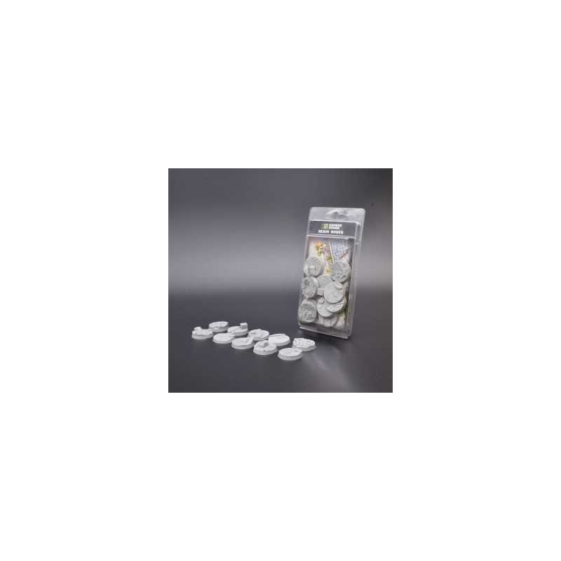 This pack contains 10 round resin bases 32mm wide in an urban warfare theme. All Resin Bases are sold unpainted.